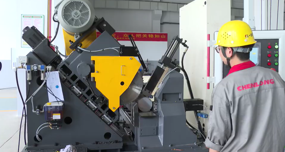 央廣網縉云5月25日消息(記者 魏煒 通訊員 劉曉玲 徐郡博)走進浙江晨龍鋸床股份有限公司的車間,這里的生產如五月天般熱火朝天。在一臺正在進行出廠終檢智能圓鋸床前,兩位工人正在調整操作,一鍵啟動機床。圓鋼經自動定長送進、夾緊、切割。只見一瞬間,斷面平整光滑的工件就完成下料。浙江晨龍鋸床股份有限公司總工程師鄧方介紹,這是數控擺式圓鋸床,它的主軸端部刀片安裝位置的端面跳動誤差只有0.02毫米,“根據2017年制定的行業(yè)標準,誤差是0.05毫米?!睌抵档陀跇藴剩粌H僅是切割精度的提高,而且還意味著機器使用壽命的延長,刀片的耐用度比以前也提高了40%。