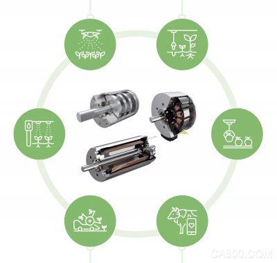 與傳統(tǒng)的大型設(shè)備不同,智能農(nóng)業(yè)中使用的機器和組件通常更緊湊、更輕。這意味著電機的可用空間通常很小。然而,電機通常用來驅(qū)動播種盤、活板、夾具、機械臂或剪切機的驅(qū)動器,因此它們必須提供足夠的動力,以在無數(shù)次循環(huán)中可靠地執(zhí)行各自的任務(wù)。與此同時,它們需要高效運行,因為自動化裝置通常會消耗儲電有限的電池中的電源。它們還必須能夠?qū)Ⅱ?qū)動電子設(shè)備集成到網(wǎng)絡(luò)化結(jié)構(gòu)中,實現(xiàn)智能控制。
